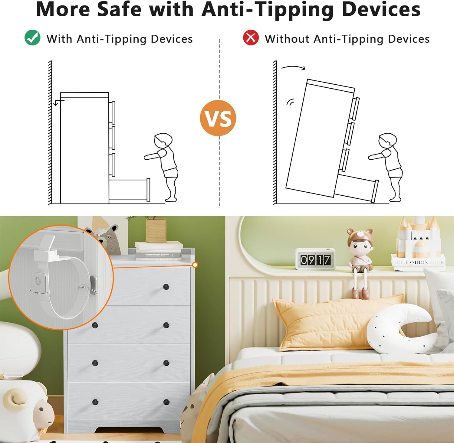 • Furnulem 4-Drawer Dresser for Bedroom - White Wood Chest of Drawers Closet Storage Cabinet Organizer for Bedroom, Living Room, Hallway & Office